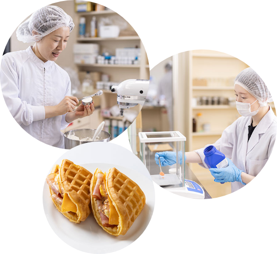 ベルギーワッフル・アメリカンワッフル・製餡・冷凍ホイップクリームなど、NB品からOEM品までさまざまな商品を手がけています。